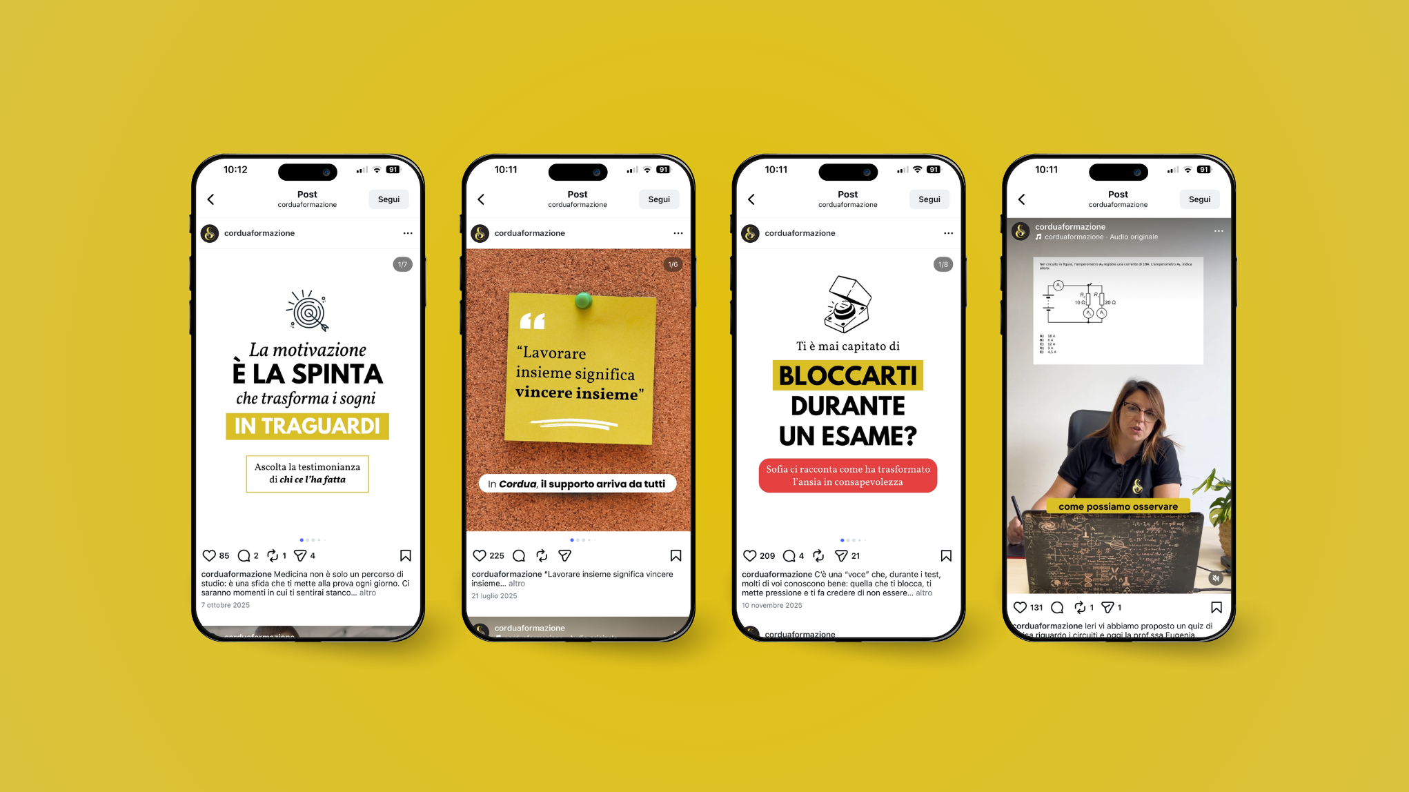 KOMUNIKASI ha supportato Cordua nel tempo, affiancando il brand nella gestione quotidiana, nelle fasi di maggiore pressione comunicativa e nei momenti di cambiamento, trasformando i social in uno strumento di relazione continua con studenti e famiglie.